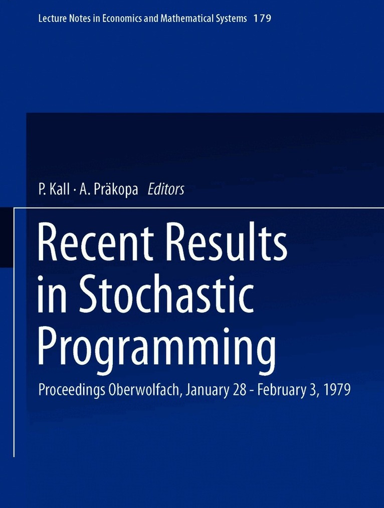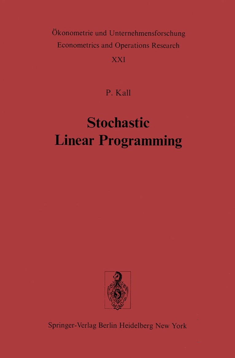 Todaymanyeconomists, engineers and mathematicians are familiar with linear programming and are able to apply it. This is owing to the following facts: during the last 25 years efficient methods have been developed; at the same time sufficient computer capacity became available; finally, in many different fields, linear programs have turned out to be appropriate models for solving practical problems. However, to apply the theory and the methods of linear programming, it is required that the data determining a linear program be fixed known numbers. This condition is not fulfilled in many practical situations, e. g. when the data are demands, technological coefficients, available capacities, cost rates and so on. It may happen that such data are random variables. In this case, it seems to be common practice to replace these random variables by their mean values and solve the resulting linear program. By 1960 various authors had already recog nized that this approach is unsound: between 1955 and 1960 there were such papers as "Linear Programming under Uncertainty", "Stochastic Linear Pro gramming with Applications to Agricultural Economics", "Chance Constrained Programming", "Inequalities for Stochastic Linear Programming Problems" and "An Approach to Linear Programming under Uncertainty".