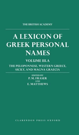 The Lexicon of Greek Personal Names, a major project of the British Academy, offers scholars a fully documented listing of all known personal names from the ancient Greek world. It draws on all the available evidence, primarily inscriptions but also literature, papyri, coins, vases and other artefacts; chronologically it ranges from the earliest times (though excluding Mycenean names) to about AD 600. It has benefited from the collaboration of scholars in many countries. It is intended to form the basis of a wide range of historical, philological, and literary research. The present volume, III.A, presents the onomastic material from the Peloponnese, Western Greece, Sicily, and Magna Graecia, the last area offering for the first time a substantial number of Greek names in Latin. It continues the series begun with Volume I, The Aegean Islands, Cyprus, and Cyrenaica, and Volume II, Attica.