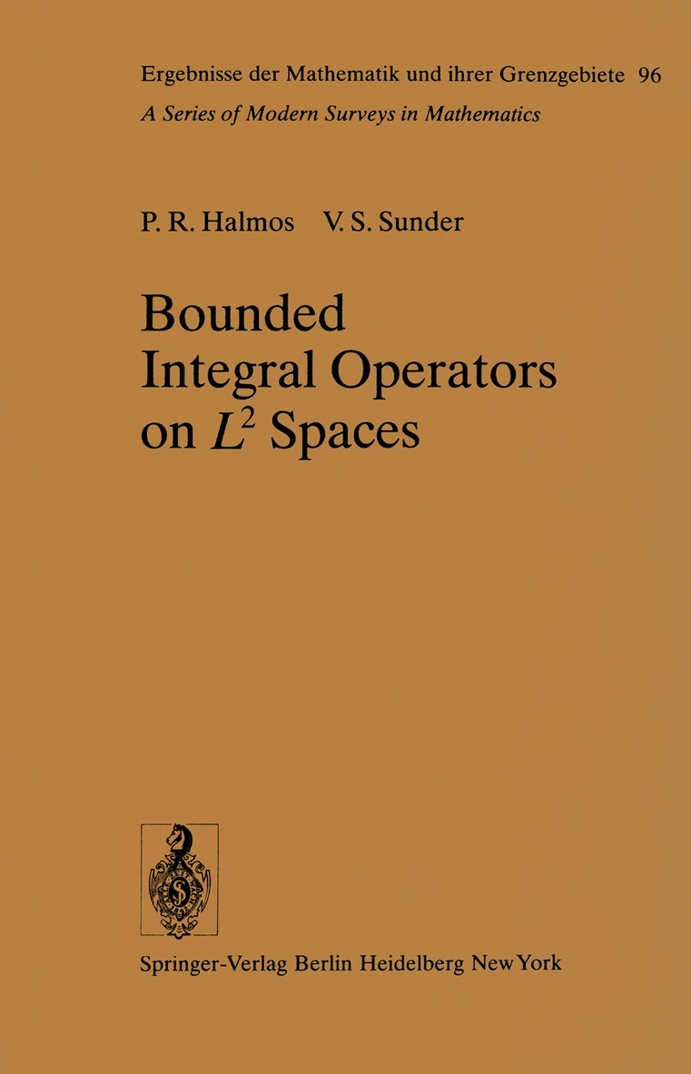 The subject. The phrase "integral operator" (like some other mathematically informal phrases, such as "effective procedure" and "geometric construction") is sometimes defined and sometimes not. When it is defined, the definition is likely to vary from author to author. While the definition almost always involves an integral, most of its other features can vary quite considerably. Superimposed limiting operations may enter (such as L2 limits in the theory of Fourier transforms and principal values in the theory of singular integrals), IJ' spaces and abstract Banach spaces may intervene, a scalar may be added (as in the theory of the so-called integral operators of the second kind), or, more generally, a multiplication operator may be added (as in the theory of the so-called integral operators of the third kind). The definition used in this book is the most special of all. According to it an integral operator is the natural "continuous" generali zation of the operators induced by matrices, and the only integrals that appear are the familiar Lebesgue-Stieltjes integrals on classical non-pathological mea sure spaces. The category. Some of the flavor of the theory can be perceived in finite dimensional linear algebra. Matrices are sometimes considered to be an un natural and notationally inelegant way of looking at linear transformations. From the point of view of this book that judgement misses something.