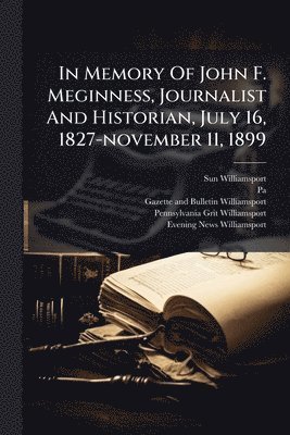 In Memory Of John F. Meginness, Journalist And Historian, July 16, 1827-november 11, 1899