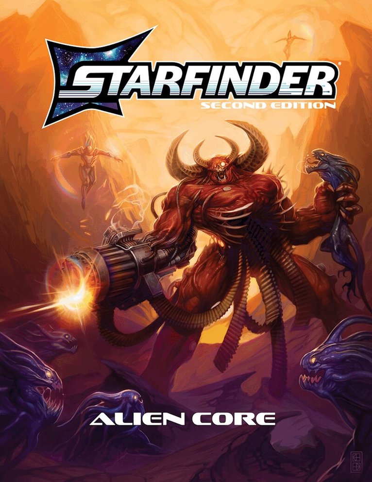 Battles in outer space or on distant planets need aliens! Inside Starfinder Alien Core, you'll find over 200 creatures, including science fantasy favorites like robots, spacefaring fey, and all-new dragons; alien beasts from friendly spiderlike empathnids to fearsome plantlike predator ksariks; and unique monsters that threaten the galaxy of Starfinder, like jinsul troopers and vicious Swarm components. You'll also find legacy Pathfinder creatures with a scifi update, like nanite-infesed allgolthus, and Starfinder classics like akata and tashtarai. These creatures cover all levels of play, from scavenging sluglike diathas to powerful Drift-dwelling spectra.Starfinder Alien Core is the only book GMs need to add enemies and allies of all sorts to their Starfinder Second Edition game, providing enough aliens of all power levels and thematic niches to populate countless worlds. And since Starfinder Second Edition is fully compatible with Pathfinder Second Edition, every alien presented in this massive tome can pull double duty in Pathfinder campaigns with next to no adjustment.Starfinder Alien Core includes:Over 200 individual alien writeups, including common foes, like glitch-spawning gremlins, robots programmed for assassination, and mindless cybernetic zombies, to unique creatures that can threaten even the most experienced interstellar explorers, such as Akiton's dreaded illumantula and the giant Castrovelian ooze known as the Terror or Ukulam!Four science-fantasy dragons, giving a new spin to adventure fantasy's oldest foes, representing the four magical traditions. Whether it's the divine cosmic dragon or primal host dragon, these beasts are sure to make a memorable experience with every encounter!New additions to classic RPG creature families like angels, devils, trolls, and giant worms.Representative combatants from some of the Starfinder setting's most iconic organizations, including the Azlanti Star Empire's aeon guards, the imperious Hellknights, nature-loving Xenowardens, the undead crew of the infamous Corpse Fleet, and more!Simple creature adjustments that allow you to customize a monster, tuning its power level or theme with just a few simple alterations. Dial up the tech level of fantasy creatures or the magical nature of scientific anomalies and keep your players on their toes!Guidelines for reading and using alien statistics, ensuring you get the most out of a creature both in and out of combat.Lists of creatures sorted by both type and level, making it easy to find the alien you need when you need it.Hundreds of beautiful full-color creature illustrations!
