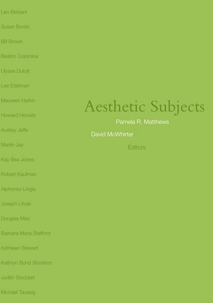 Demonstrates the remarkable resurgence of interest in the aestheticRecent calls for a return to aesthetics occur precisely at a moment when it is increasingly evident that nothing concerning aesthetics is self-evident anymore. Determined to recover the value of aesthetic experience for artistic, cultural, and social analysis, the contributors to this volume-prominent scholars in literature, philosophy, art history, architecture, history, and anthropology-begin from a shared recognition that ideological readings of the aesthetic have provided invaluable insights, in particular, that analyses of aesthetics within historical and social contexts tell us a great deal about the experience of aesthetic encounters. From multiple and complementary perspectives, the contributors address topics as varied as Nabokov and Dickens, Caravaggio and Shelley Winters, gender and sexuality, advertising and AIDS. Taken together, their essays constitute a sustained and multifarious effort to resituate aesthetic pleasure in the mixed, impure conditions characteristic of every social practice and experience, however privileged or marginalized, and to ask what happens to the aesthetic if we consider it apart from-or at least in tension with-its historically dominant discursive formulations. As such, this volume establishes a renewed sense of aesthetic discourse and its usefulness as a tool for understanding culture. Contributors: Leo Bersani, U of California, Berkeley; Susan Bordo, U of Kentucky; Bill Brown, U of Chicago; Beatriz Colomina, Princeton U; Ulysse Dutoit, U of California, Berkeley; Lee Edelman, Tufts U; Maureen Harkin, Reed College; Howard Horwitz, U of Utah; Audrey Jaffe, U of California, Santa Cruz; Martin Jay, U of California, Berkeley; Kay Bea Jones, Ohio State U; Robert Kaufman, Stanford U; Alphonso Lingis, Pennsylvania State U; Joseph Litvak, Tufts U; Douglas Mao, Cornell U; Barbara Stafford, U of Chicago; Kathleen Stewart, U of Texas; Kathryn Bond Stockton, U of Utah; Judith Stoddart, Michigan State U; Michael Taussig, Columbia U.