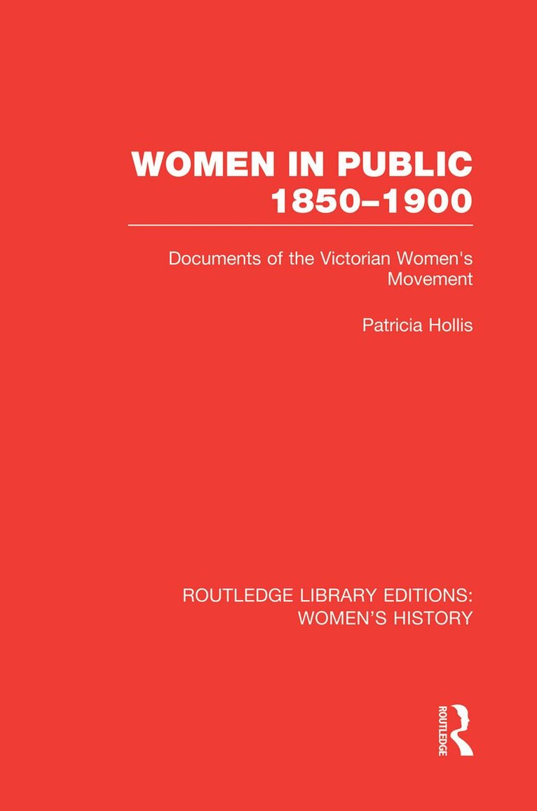 Assembling a full and comprehensive collection of material which illustrates all aspects of the emergent women’s movement during the years 1850-1900, this fascinating book will prove invaluable to students of nineteenth century social history and women's studies, to those studying the Victorian novel and to sociologists.Women’s pamphlets and speeches, parliamentary debates and popular journalism, letters and memoirs, royal commissions and the leading reviews, are all used to document the conflicting images of women: ‘surplus women’ and the issue of emigration; women’s work and male hostility to it; the opening of education by Emily Davies; the claim to equity at law; the attack on the sexual double standard, led by Josephine Butler; women’s public service from philanthropy – exemplified in a Mary Carpenter or Louisa Twining or Octavia Hill – to local government; and finally women’s entry into politics led by Lydia Becker.The contents range from Caroline Norton on her battle for child custody in the 1830s to Annie Besant’s inspiration of the match-girl’s strike in 1888, and from W. T. Stead on child prostitution to Mrs Humphrey War’s Appeal against female suffrage in 1889.The book was originally published in 1979.