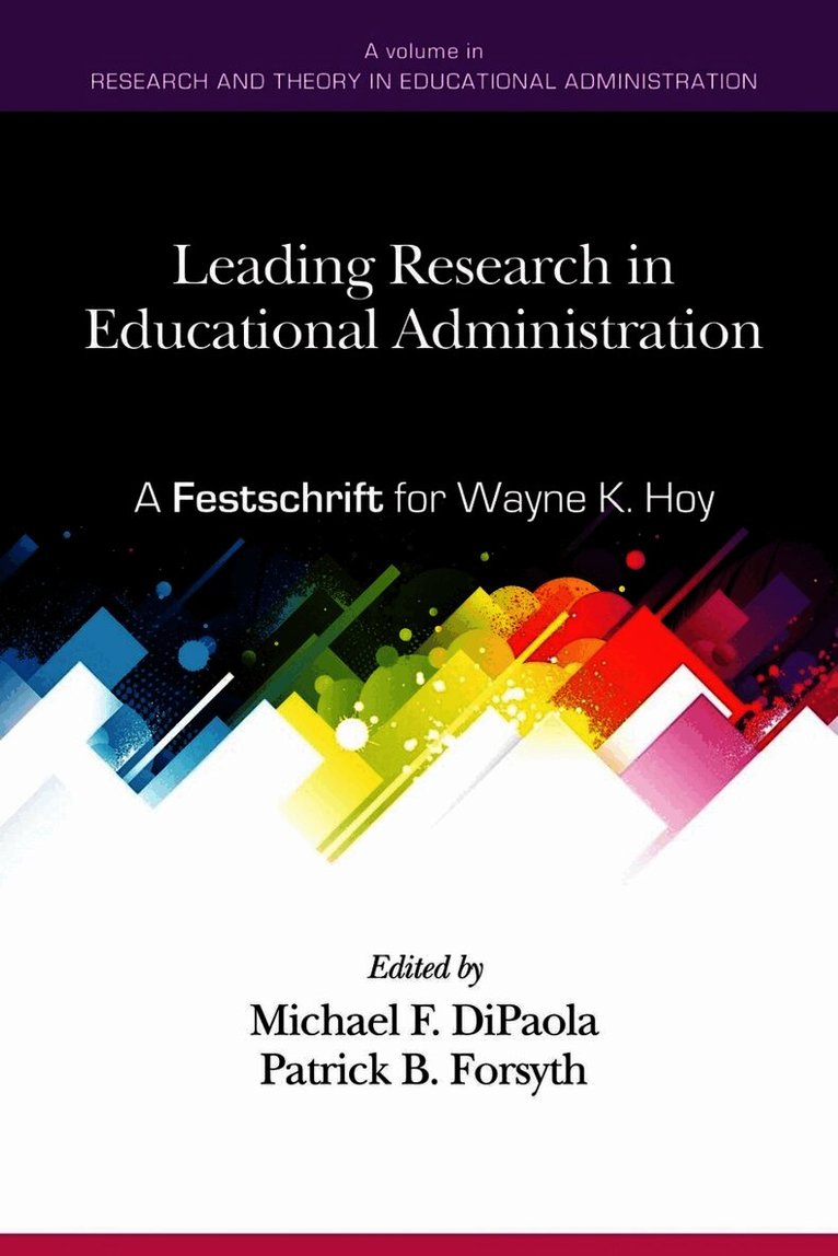 Leading Research in Educational Administration: A Festschrift for Wayne K. Hoy is the tenth in a series on research and theory dedicated to advancing our understanding of schools through empirical study and theoretical analysis that was initiated by Wayne and Cecil G. Miskel. This tenth anniversary edition honors and celebrates the research leadership Wayne has provided in the field of educational administration through his distinguished career. The festschrift is organized around the analysis of school contexts and includes constructs Wayne and his protégés have studied and researched: climate, trust, efficacy, academic optimism, organizational citizenship, and mindfulness. It concludes with the work of colleagues on the salient contemporary issues of innovation, power, leadership succession, and several others focused on improving schools. Chapter authors all have close connections to Wayne - former students and their students, as well as colleagues and friends.