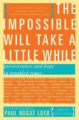 What keeps us going when times get tough? How have the leaders and unsung heroes of world-changing political movements persevered in the face of cynicism, fear, and seemingly overwhelming odds? In The Impossible Will Take a Little While , they answer these questions in their own words, creating a conversation among some of the most visionary and eloquent voices of our times. Ten years after his original edition, Paul Rogat Loeb has comprehensively updated this classic work on what it's like to go up against Goliath- whether South African apartheid, Mississippi segregation, Middle East dictatorships, or the corporations driving global climate change. Without sugarcoating the obstacles, these stories inspire the hope to keep moving forward.Think of this book as a conversation among some of the most visionary and eloquent voices of our times- or any time: Contributors include Maya Angelou, Diane Ackerman, Marian Wright Edelman, Wael Ghonim, Václav Havel, Paul Hawken, Seamus Heaney, Jonathan Kozol, Tony Kushner, Audre Lorde, Nelson Mandela, Bill McKibben, Bill Moyers, Pablo Neruda, Mary Pipher, Arundhati Roy, Dan Savage, Desmond Tutu, Alice Walker, Cornel West, Terry Tempest Williams, and Howard Zinn
