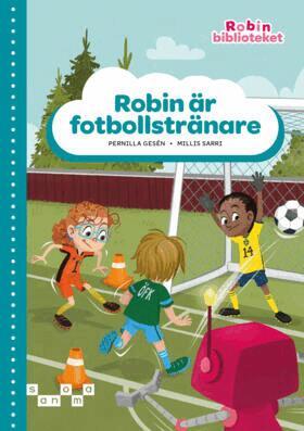 Robin är fotbollstränare tillhör Robinbiblioteket, ett nytt tillskott om den populära roboten Robin. Biblioteket består av helt nyskrivna, fristående berättelser om allas vår favoritrobot och uppmuntrar till läsning, oavsett om barnen tidigare har läst om Robin eller inte. Berättelserna är roliga och spännande, med färgglada och humoristiska bilder som stödjer läsningen. De passar åldern 6–9 år.