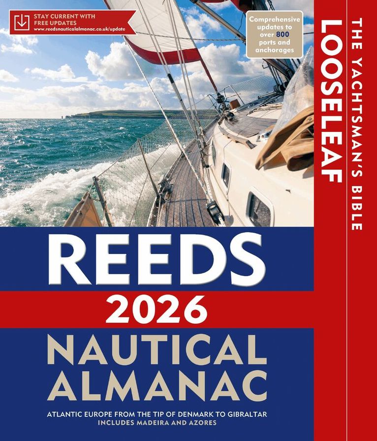 The Reeds Looseleaf Almanac provides all the information required to navigate Atlantic coastal waters around the UK, Ireland, Channel Islands, and the western European coastline from the tip of Denmark right down to Gibraltar, including the Azores and Madeira.This is a versatile system that combines almanac and pilotage information in a convenient looseleaf form. This unique format, bound inside a durable binder which stays open on the chart table, lets the user tailor the Almanac to their needs by personalising the contents supplied with whatever information they may want to add or take out. Information is quick and easy to access, whilst allowing the navigator to refresh it with the annual update pack.Includes 700 harbour chartlets, harbour facilities, tide tables and streams, 7,500 waypoints, international codes and flags, weather, distance tables, passage advice, area planning charts, rules of the road, radio information, communications, safety, mayday and distress procedures, and documentation and customs. The 2026 edition is updated throughout, containing over 45,000 changes, and includes a free Reeds Marina Guide.Also available: free supplements of up-to-date navigation changes from January to June at: www.reedsnauticalalmanac.co.uk"There are some things I would not go to sea without - Reeds is one of them" Sir Chay Blyth"The big, bold, extravagantly comprehensive king of Almanacs" Yachting World