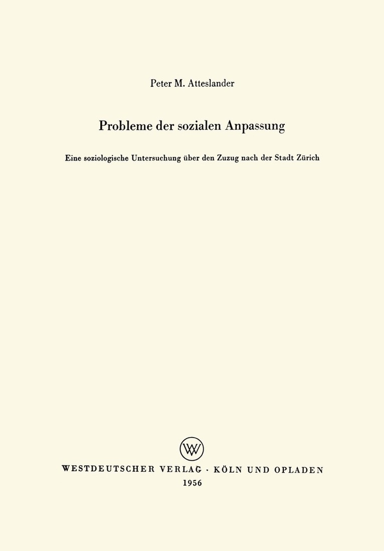 Eine soziologische Untersuchung über den Zuzug nach der Stadt Zürich