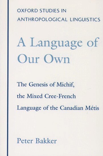 The Michif language -- spoken by descendants of French Canadian fur traders and Cree Indians in western Canada -- is considered an 'impossible language' since it uses French for nouns and Cree for verbs, and comprises two different sets of grammatical rules. Bakker uses historical research and fieldwork data to present the first detailed analysis of this language and how it came into being.