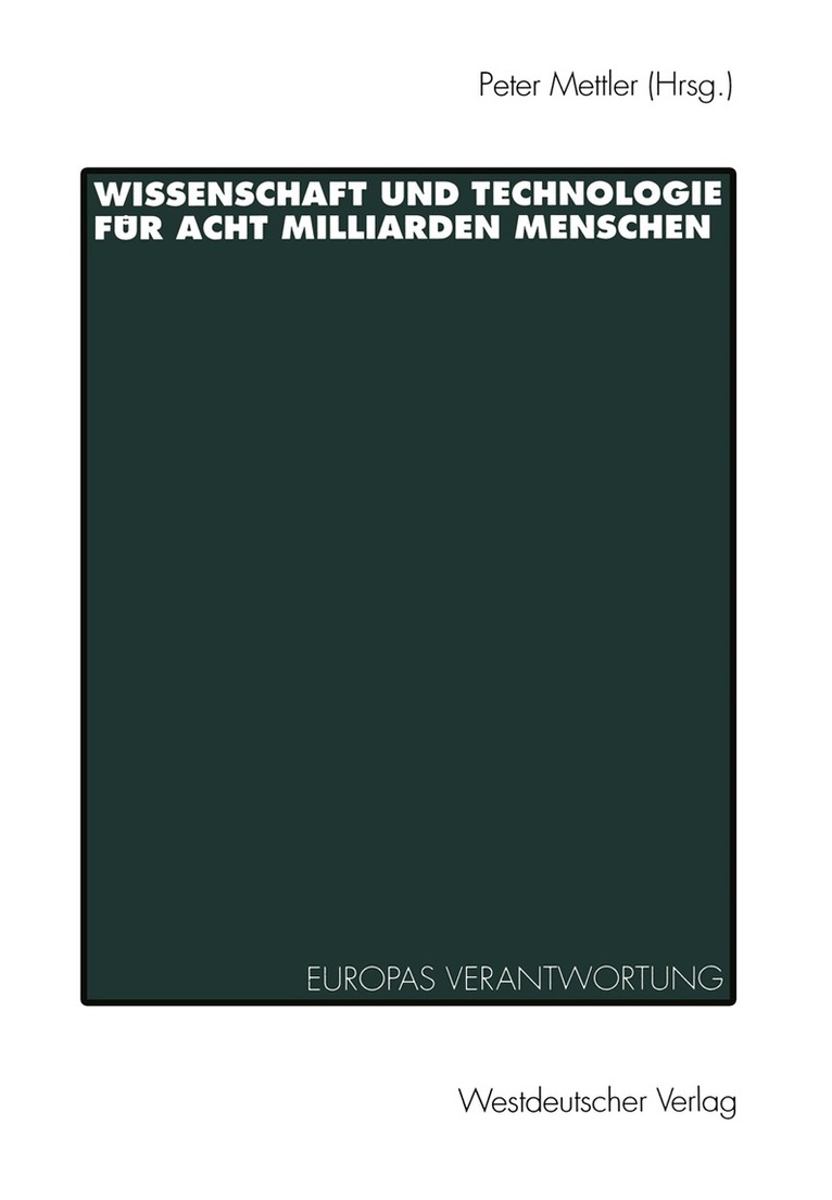 Sollte Europa durch den richtigen Einsatz entsprechender Wissenschaften und Technologien nicht eine Fuhrungsrolle darin ubernehmen konnen, einem immer weiter wachsenden Prozentsatz der Erdbevolkerung ein menschenwurdiges Leben zu ermoglichen, ohne die Okosphare zu zerstoren? Was waren die kurz-, mittel- und langfristigen Prioritaten einer solchen Zielsetzung und wie konnte die weltweite Gemeinde der Wissenschaftler und Technologieentwickler diese am besten einsetzen, um den Grundbedurfnissen und Hoffnungen der 8 Milliarden Menschen entgegenzukommen, die unseren Planeten im Jahre 2020 bewohnen werden?