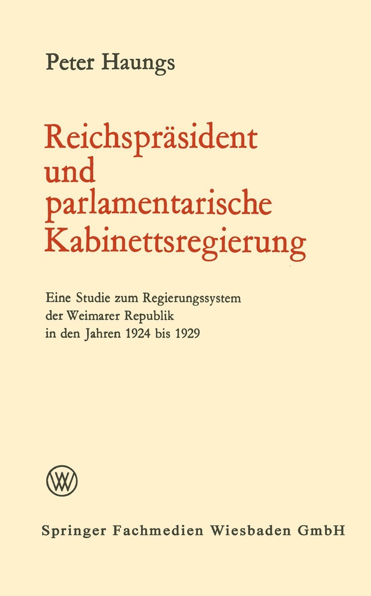 Reichspräsident und parlamentarische Kabinettsregierung
