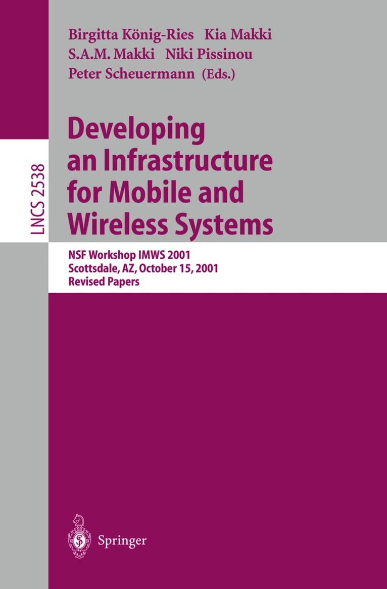 This book constitutes the thoroughly refereed post-proceedings of an International NSF Workshop on an Infrastructure for Mobile and Wireless Systems held in Scottsdale, Arizona in October 2001.The 11 revised full papers presented together with 4 invited contributions and a comprehensive consensus report for developing an infrastructure for mobile and wireless systems were carefully selected during two rounds of reviewing and improvement. The book assesses the state of the art in the area and provides a research agenda for future R&D work.