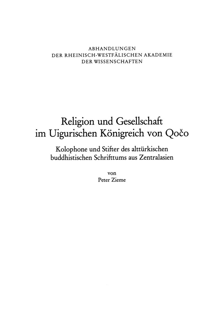 Kolophone und Stifter des alttürkischen buddhistischen Schrifttums aus Zentralasien