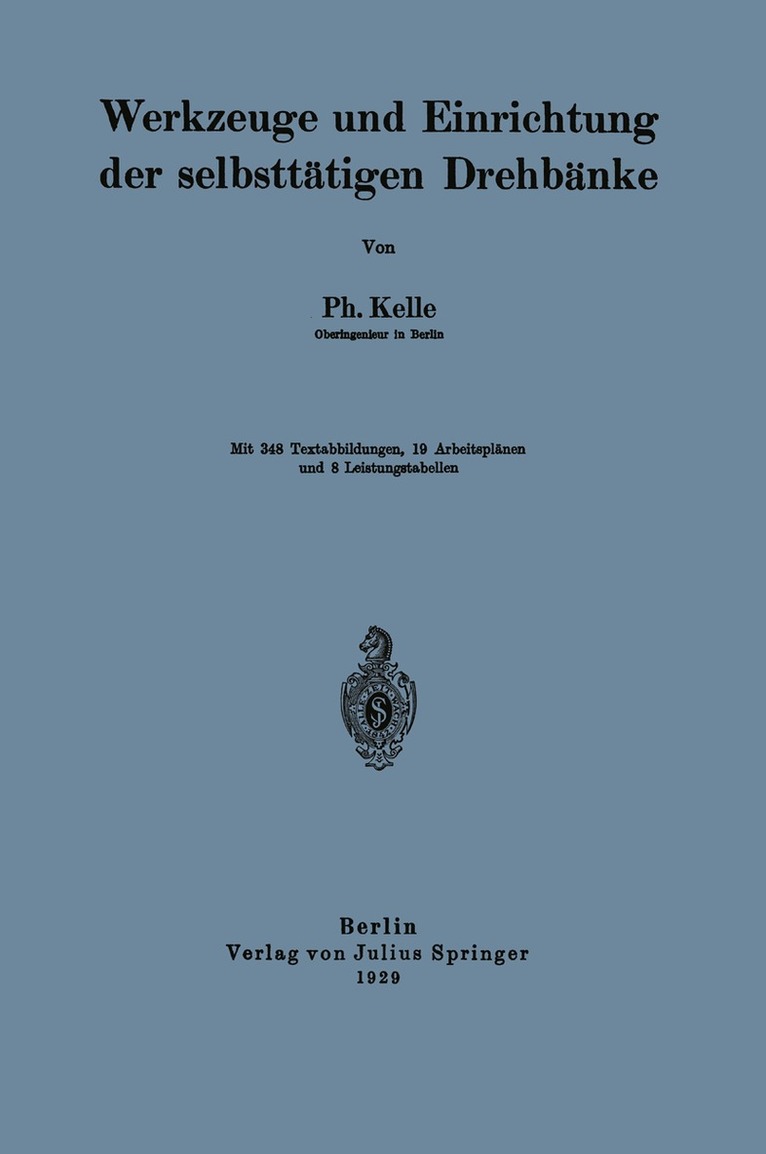 Die konstruktive Durchbildung die Werkzeuge, die Arbeitsweise und der Betrieb der selbsttätigen Drehbänke Ein Lehr- und Nachschlagebuch