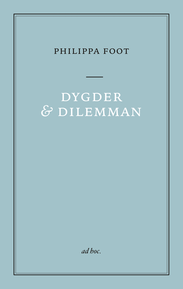 En spårvagn skenar mot fem oskyldiga personer. Du kan styra om vagnen mot en ensam person och därmed rädda livet på de fem. Bör du styra om vagnen? Sedan Philippa Foot formulerade det välbekanta ”spårvagnsexemplet” har filosofer försökt ge ett övertygande svar. Men det är inte exemplet i sig som placerar Foot bland 1900-talets främsta moralfilosofer. Ett av hennes mer betydande bidrag var att lyfta fram en alternativ uppfattning om hur man över huvud taget bör bedriva moralfilosofi. Med stöd från bland andra Aristoteles styrde Foot in moralfilosofin på ett mer substantiellt spår, exempelvis genom att väcka liv i uppfattningen om dygdernas betydelse för att handla gott. I denna bok finns några av Philippa Foots viktigaste texter och den som vill förstå de senaste 70 årens analytiska moralfilosofi har här en självklar ingång till en av vår tids främsta tänkare. Philippa Foot (1920–2010) var verksam i Oxford men bodde och undervisade även i USA under två decennier. Foot var ledamot i British Academy och American Academy of Arts and Science, och hon var under många år aktiv inom Oxfam. År 2001 gav hon ut sin första bok, ”Natural goodness” (Oxford). Hon dog 2010, på sin 90-årsdag.