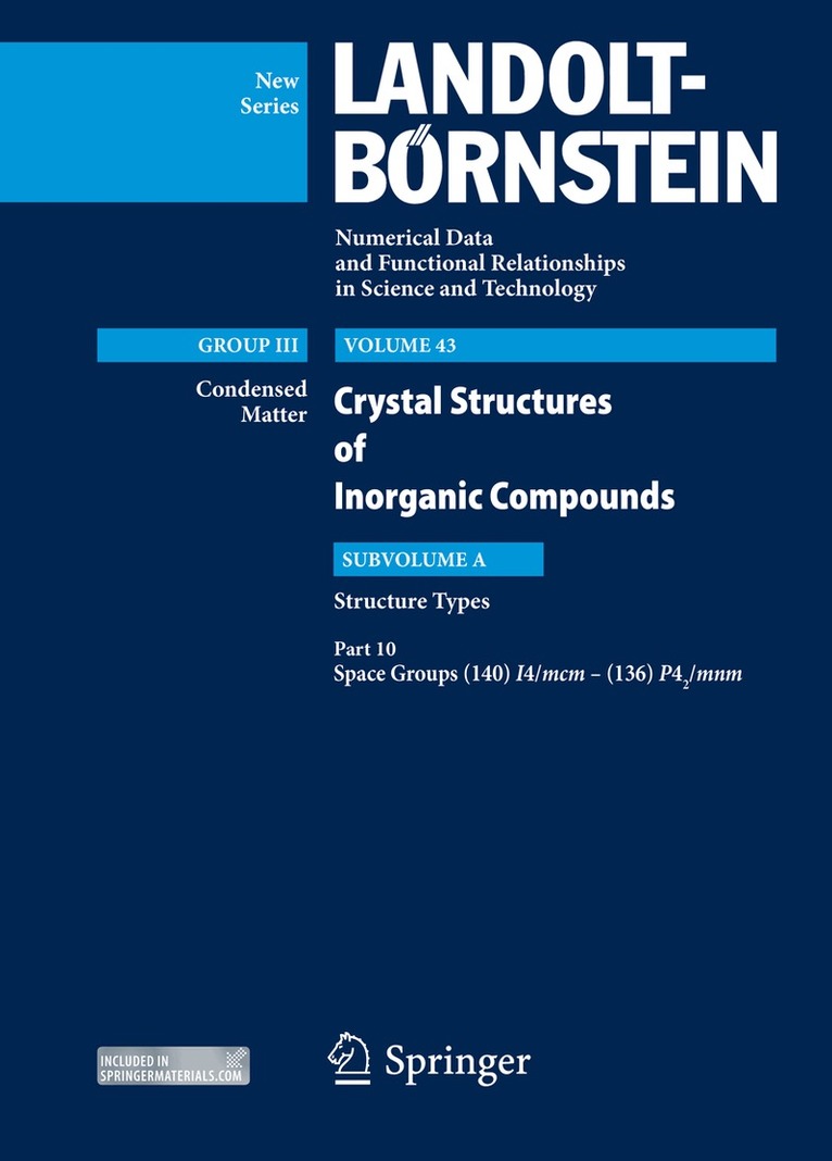 Volume 43 of Group III deals with crystallographic data of both intermetallic and classical inorganic compounds, thus forming an update of the former Landolt-Börnstein volumes III/6 (Structure Data of Elements and Intermetallic Phases) and III/7 (Crystal Structure Data of Inorganic Compounds).
