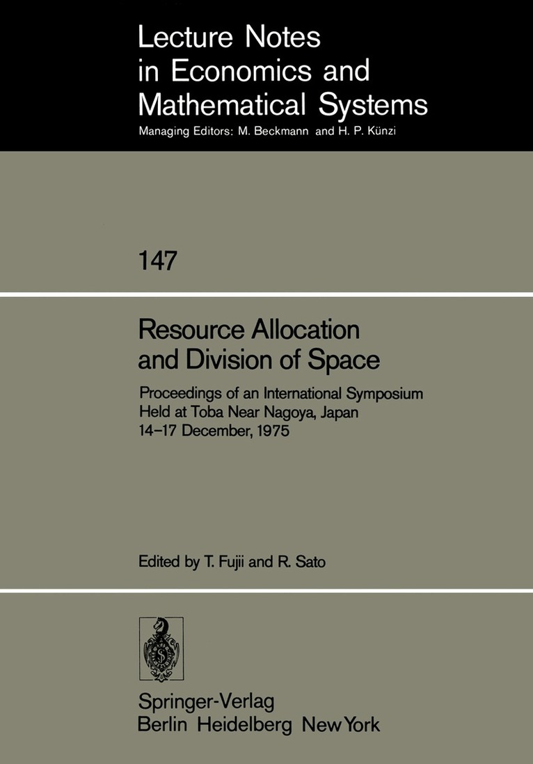This volume on the proceedings of a symposium on Resource Allocation and Division of Space represents a revised interest in the old problem of allocation and a fresh attack on the increasingly vital problem of space management. The symposium was held at the Toba International Hotel, near Nagoya, Japan in December, 1975. Although the contributions included in this volume are all broadly concerned with either resource allocation or spatial problems, the editors have selected papers essentially on the basis of scientific merits and orginality rather than on the basis of narrowly focused topics and titles. The result is that all of the papers included, ranging from growth, index number, space density function, factor mobility, concentration and accumulation between sectors and spaces, distributions, relationship between spatial structure and organizational structure to the application of Lie group to production functions, are of the highest quality. It is the intention and belief of the editors that this collection of wide ranging but highly original papers is a major contribution to the advancement of economic science. The editors feel that a symposium of this kind is worthwhile and should be held at regular intervals. The list of contributions can be divided into two parts. Part I, consisting of papers 1 through 9, deals in general with allocation. Papers 10 through 13 compose Part II, which is primarily concerned with spatial problems.