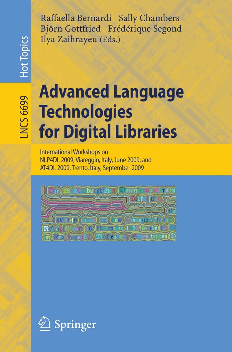 This book constitutes the thoroughly refereed post proceedings of two international workshops on special aspects of digital libraries, namely the First International Workshop on Natural Language Processing for Digital Libraries, NLP4DL 2009, held in Viareggio, Italy in June 2009 and the CACAO Project Workshop Advanced Technologies for Digital Libraries, AT4DL 2009, held in Trento, Italy in September 2009. A new open call was sent after the workshops. The revised full papers presented at the workshops and the newly submitted ones went through two rounds of reviewing and revision. The 10 papers selected address various aspects of NLP in digital libraries, search, classification, and digital document processing.