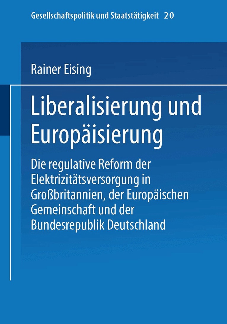 Die regulative Reform der Elektrizitätsversorgung in Großbritannien, der Europäischen Gemeinschaft und der Bundesrepublik Deutschland