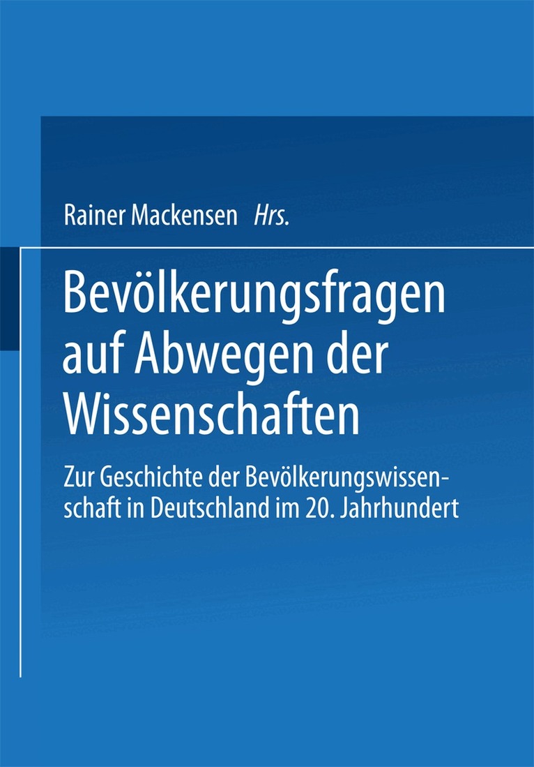 Die Tagung "Bevölkerungslehre und Bevölkerungspolitik im ,,Dritten Reich"", deren Ergebnise hier dokumentiert werden, wurde von der Deutschen Gesellschaft für De mographie (DGD) unter deren Präsidenten Herwig Birg mit Unterstützung des Max Planck-Instituts für demographische Forschung, Rostock, im Hamackhaus der Max Planck-Gesellschaft in Berlin am 30. November und 1. Dezember 2001 durchgeführt. Ihr war, ein Jahr zuvor und am gleichen Ort, die Tagung "Bevölkerungslehre und Be völkerungspolitik vor 1933,,1 vorausgegangen. Beide Tagungen waren auf Vorschlag 2 von Harald Michel, IFAD , vom Vorstand der Johann Peter Süßmilch-Gesellschaft und der Deutschen Gesellschaft für Bevölkerungswissenschaft, den beiden Vorgängerge sellschaften der DGD, beschlossen und dem hiesigen Herausgeber zur inhaltlichen Vorbereitung anvertraut worden. Die Referate werden hier nach den überarbeiteten Manuskripten der Autoren ver öffentlicht. Beide Tagungen waren als Informationsveranstaltungen angelegt: Die Re ferate wurden - wie bei der vorhergehenden Veranstaltung 2000 - sämtlich nach der Meldung der Autoren aufgrund eines "Calls for Papers" gehalten, um einen Überblick über die bereits laufenden Untersuchungen sowie über den "Stand der Forschung" zum Thema herzustellen. Weder der Veranstalter noch der Herausgeber haben Themen steIlung oder Gestaltung der Referate beeinflußt. Die wissenschaftliche Verantwortung liegt also bei den Autoren. Deren Aussagen lassen einen Schluß auf die Auffassungen des Veranstalters oder des Herausgebers nicht zu.