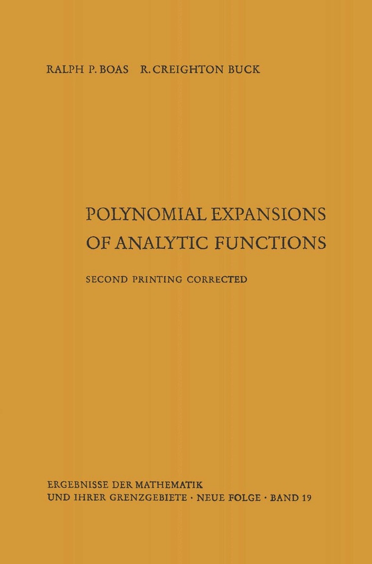 This monograph deals with the expansion properties, in the complex domain, of sets of polynomials which are defined by generating relations. It thus represents a synthesis of two branches of analysis which have been developing almost independently. On the one hand there has grown up a body of results dealing with the more or less formal prop erties of sets of polynomials which possess simple generating relations. Much of this material is summarized in the Bateman compendia (ERDELYI [1], voi. III, chap. 19) and in TRUESDELL [1]. On the other hand, a problem of fundamental interest in classical analysis is to study the representability of an analytic function f(z) as a series ,Lc,. p,. (z), where {p,. } is a prescribed sequence of functions, and the connections between the function f and the coefficients c,. . BIEBERBACH's mono graph Analytische Fortsetzung (Ergebnisse der Mathematik, new series, no. 3) can be regarded as a study of this problem for the special choice p,. (z) =z", and illustrates the depth and detail which such a specializa tion allows. However, the wealth of available information about other sets of polynomials has seldom been put to work in this connection (the application of generating relations to expansion of functions is not even mentioned in the Bateman compendia). At the other extreme, J. M.