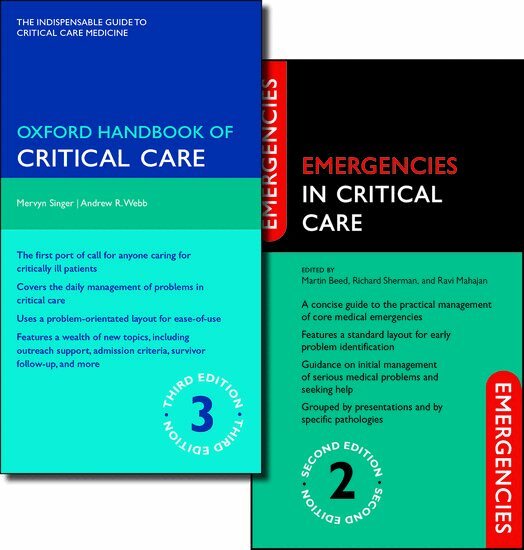 This excellent value pack contains the Oxford Handbook of Critical Care Third Edition and Emergencies in Critical Care Second Edition. The combination of practical advice and essential background information with an easily accessible guide in emergencies presents a unique package essential to every doctor with an interest in Critical Care.The fully revised, third edition of the Oxford Handbook of Critical Care describes best practice of critical care in a succinct, concise and clinically-orientated way. Covering the principles of general management, it includes therapeutic and monitoring devices, specific disorders of organ systems, as well as detailed information on drugs and fluids. New material has been added on key areas such as airway maintenance, dressing techniques, infection control, echocardiography, tissue perfusion monitoring, coma and more. With up-to-date references and invaluable clinical advice, there is also plenty of space to add notes or amend sections to suit local protocols. Emergencies in Critical Care provides a practical, accessible guide to all emergency situations encountered in the critical care setting. Emergencies are very common in the critical care setting; but also surprisingly predictable. This book helps critical care staff identify those at risk, how to manage them, and be prepared in the ward. This second edition covers new areas of importance, including sections on how to deal with adverse events and critical incidents involving critically ill patients, patient-safety and improved patient rescue packages, and on the practicalities of infection control procedures. Normal values have been combined into one short chapter for easy reference. Easy to use and evidence based, this book will help all critical care staff involved with the management of emergencies, from the new junior doctor to the experienced consultant in a portable and easily-readable format.