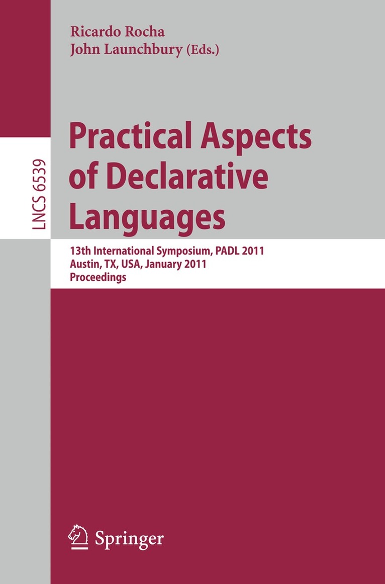 This book constitutes the refereed proceedings of the 13th International Symposium on Practical Aspects of Declarative Languages, PADL 2011, held in Austin, TX, USA, in January 2011, co-located with POPL 2011, the Symposium on Principles of Programming Languages.The 17 revised full papers presented together with one application paper were carefully reviewed and selected from 40 submissions. The volume features a variety of contributions ranging from message-passing and mobile networks, concurrent and parallel programming, event processing and reactive programming, profiling and portability in Prolog, constraint programming, grammar combinators, belief set merging and work on new language extensions and tools.