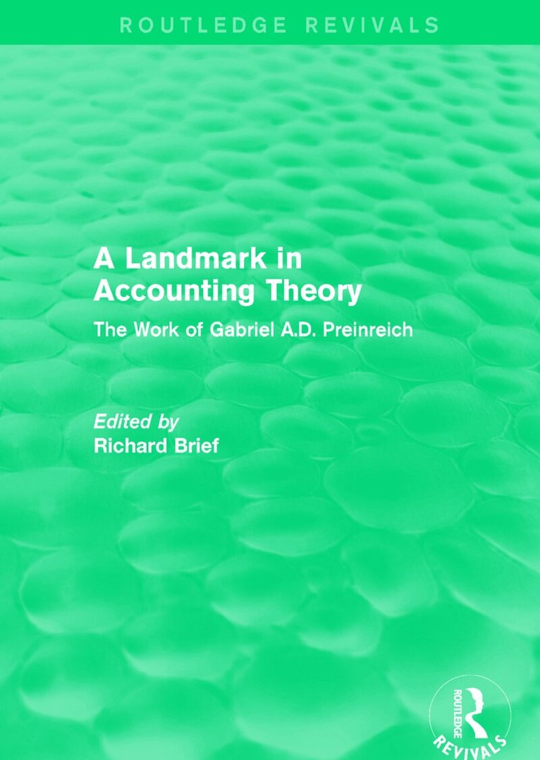 First published in 1996, this book seeks to establish Gabriel A.D. Preinreich as an important accounting theorist and redress the neglect that his work has suffered despite its foundational importance to prominent areas of modern research. Two criteria were used to select the papers included in this volume — papers related to dividends, yield, valuation, goodwill and depreciation were selected while those that were primarily concerned with mathematical economics were omitted. The collected articles and other items were written between 1931 and 1944 and grouped into three sections: accounting from the investor’s viewpoint; valuation and goodwill; and depreciation.
