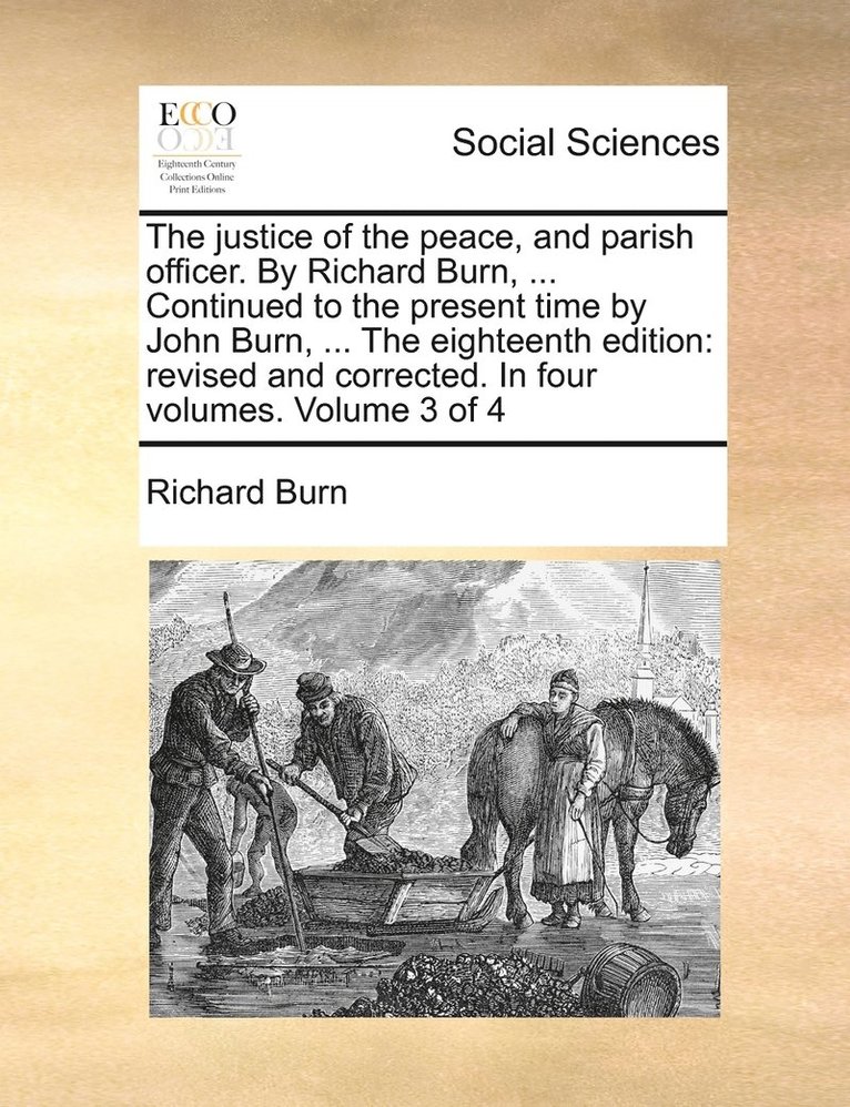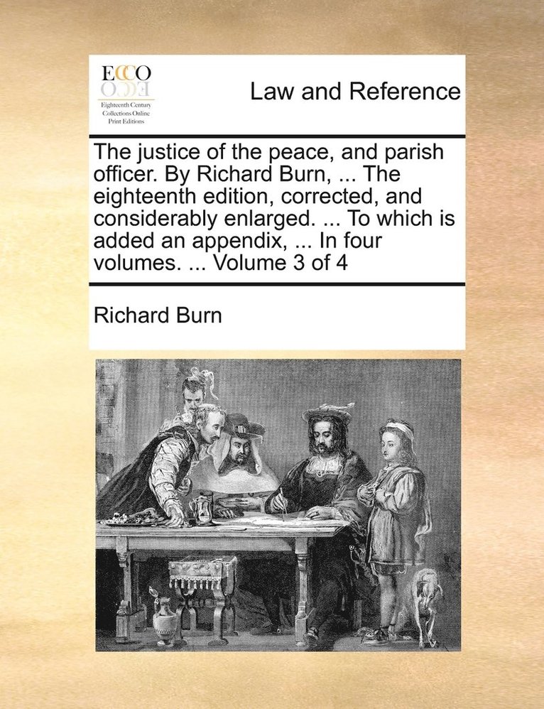 justice of the peace, and parish officer. By Richard Burn, ... The eighteenth edition, corrected, and considerably enlarged. ... To which is added an appendix, ... In four volumes. ... Volume 3 of 4