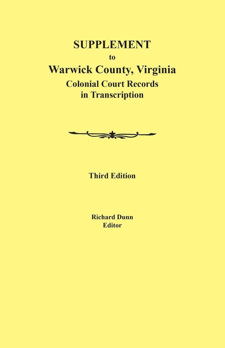 Warwick County, Virginia Colonial Court Records in Transcription. Third Edition