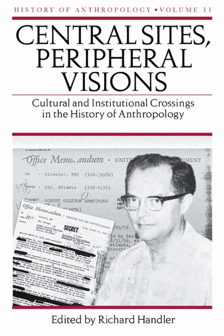 Central Sites, Peripheral Visions presents five case studies that explore the dilemmas, moral as well as political, that emerge out of anthropology's unique position as both central and peripheral. From David Koester's analysis of how ethnographic descriptions of Iceland marginalized that country's population, to Kath Weston's account of an offshore penal colony where officials mixed prison work with ethnographic pursuits, from Brad Evans' reflections on the ""bohemianism"" of both the Harlem vogue and American anthropology, to Arthur J. Ray's study of anthropologists who serve as expert witnesses in legal cases, the essays in the eleventh volume of the ""History of Anthropology"" series reflect on anthropology's always problematic status as centrally peripheral, or peripherally central. Finally, George W. Stocking, Jr., in a contribution that is almost a book in its own right, traces the professional trajectory of American anthropologist, Robert Gelston Armstrong, who was unceremoniously expelled from his position at the University of Chicago because of his communist sympathies in the 1950s. By taking up Armstrong's unfinished business decades later, Stocking engages in an extended meditation on the relationship between center and periphery and offers ""a kind of posthumous reparation,"" a page in the history of the discipline for a distant colleague who might otherwise have remained in the footnotes.