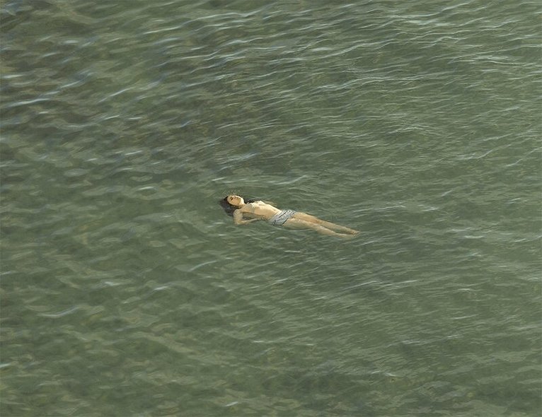 Since the publication of Richard Misrach’s best-selling and critically acclaimed publication On the Beach, he has continued to photograph at the same location, building a body of work that has been exhibited as On the Beach 2.0—a reference to the technological and optical developments that have made the intensely detailed, exquisitely rendered depictions possible. The Mysterious Opacity of Other Beings focuses less on the abstraction of water, sand, and mote-sized figures, instead honing in on the gestures and expressions of bathers adrift in the ocean, at play or in poses ranging from relaxation to transcendence. Misrach has rarely ventured into portraiture; this work is his first to focus exclusively on the human figure. Each photograph features one or more individuals crisply rendered from a distance, as they seem to levitate among turquoise waves, isolated from everything save the shifting patterns of the ocean. There is ambiguity and a sense of the uncanny in the figures suspended in the water: are they approaching the shore or moving away from it? Each image is presented both as full frame and as a series of enlarged details that enable the viewer to linger on each individual’s complete surrender of their body to the sea—a seductive melding of human and nature.