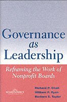 A new framework for helping nonprofit organizations maximize the effectiveness of their boards. Written by noted consultants and researchers attuned to the needs of practitioners, Governance as Leadership redefines nonprofit governance. It provides a powerful framework for a new covenant between trustees and executives: more macrogovernance in exchange for less micromanagement. Informed by theories that have transformed the practice of organizational leadership, this book sheds new light on the traditional fiduciary and strategic work of the board and introduces a critical third dimension of effective trusteeship: generative governance. It serves boards as both a resource of fresh approaches to familiar territory and a lucid guide to important new territory, and provides a road map that leads nonprofit trustees and executives to governance as leadership. Governance as Leadership was developed in collaboration with BoardSource, the premier resource for practical information, tools and best practices, training, and leadership development for board members of nonprofit organizations. Through its highly acclaimed programs and services, BoardSource enables organizations to fulfill their missions by helping build effective nonprofit boards and offering credible support in solving tough problems. For the latest in nonprofit governance, visit www.boardsource.org, or call us at 1-800-883-6262.