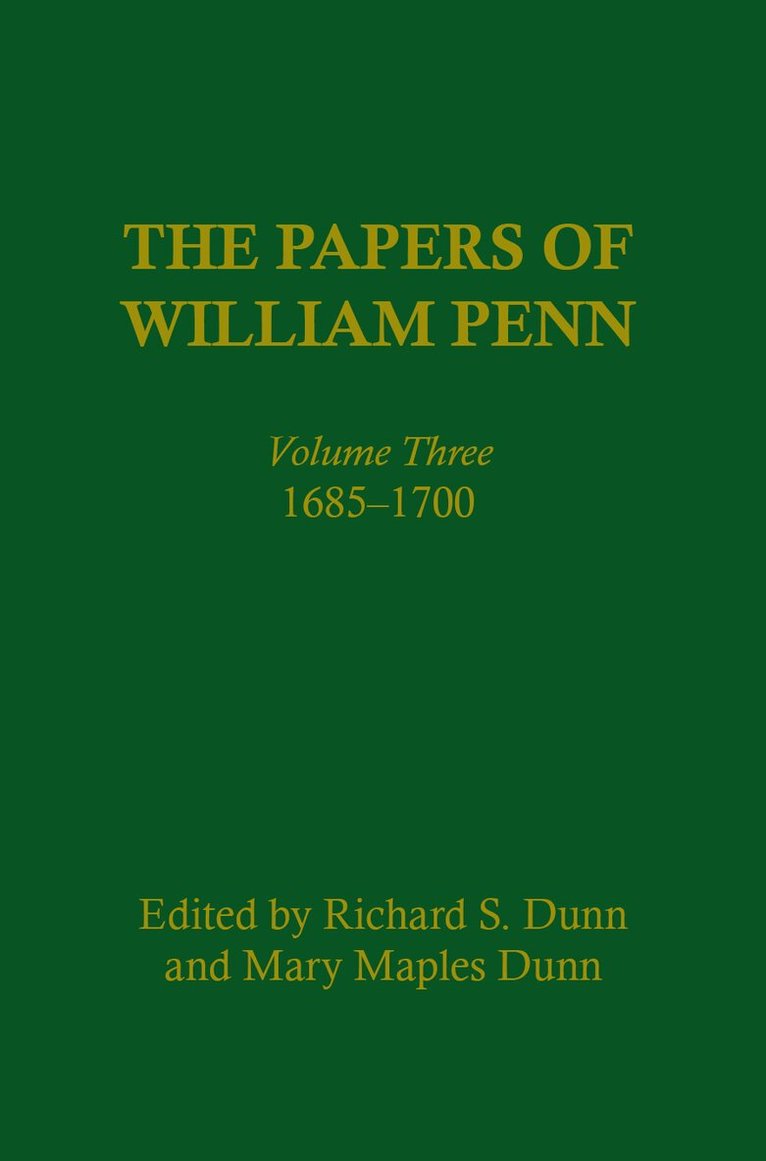 Volume III covers Penn's return to England, his appeal to James II to support religious toleration, his struggle to reestablish his position in England and to manage his colony in America, and his return to Pennsylvania in 1699.