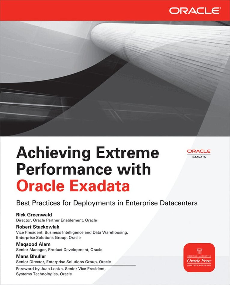 Take advantage of the tightly integrated hardware and software in the Oracle Exadata Database MachineWork with Oracle Exadata software features, including Smart Scans, Oracle Exadata Hybrid Columnar Compression, storage indexes, Oracle Exadata Smart Flash Cache, and I/O Resource ManagerUnderstand Oracle Exadata Database Machine balanced hardware architectureArchitect, administer, and monitor Oracle Exadata Storage ServersDeploy data warehouses on the Oracle Exadata Database MachineRun online transaction processing (OLTP) workloads on the Oracle Exadata Database MachineConsolidate databases with and migrate databases to the Oracle Exadata Database Machine395 kr