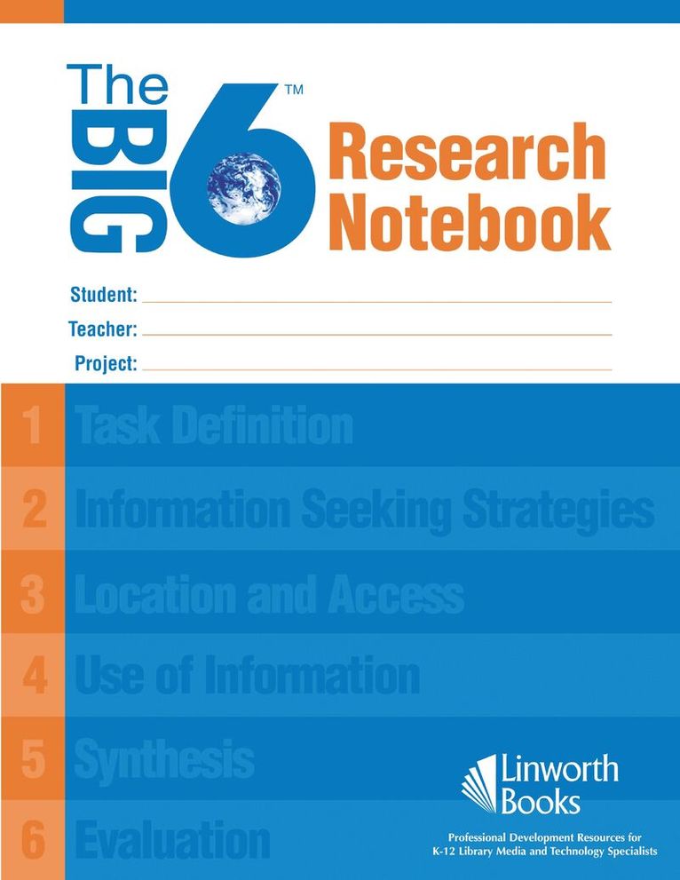 The Big6™ Research Notebook is designed to help you and your students successfully complete research and report assignments, while learning topics of interest using the Big6™ approach. Using this tool, the teacher librarian can guide students through the research process in less time, with better results and less frustration for the students. With the Big6™ Notebook, the students have a way to organize their thoughts and note their research findings in a helpful and meaningful format. Sold in packs of 25.