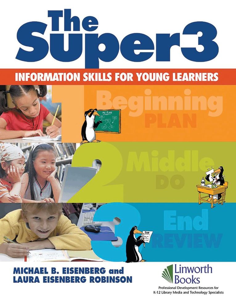Use The Super3, a spin off from the widely used Big6, to help students in grades PreK-2 develop crucial problem-solving skills. Ready-to-use worksheets include explanations for daily implementation of the Super3 into the classroom.Use The Super3, a spin off from the widely used Big6, to help students in grades PreK-2 develop crucial problem-solving skills. Learn how to break down the problem-solving process so that younger students get it and remember it. Discover a process model for children to learn and use in order to be successful with the various tasks they undertake. The Super3 helps younger students recognize what they are doing so they can label and talk about their research. Provides an easy transition into the Big6. Ready-to-use worksheets include explanations for daily implementation of the Super3 into the classroom. Mike Eisenberg and Laura Eisenberg Robinson have adapted the widely used Big6 research approach for students in grades PreK-2. The Super3 uses the three simple steps: Plan, Do, Review.