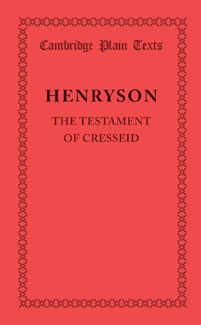 Originally published in 1926 as part of the Cambridge Plain Texts series, this volume contains the full text of The Testament of Cresseid by fifteenth-century Scottish poet Robert Henryson. A short editorial introduction is also included. This book will be of value to anyone with an interest in Henryson and Scottish poetry.