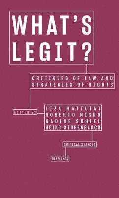 Once considered a stepchild of social theory, legal criticism has recently received a great deal of attention, perpetuating what has always been an ambivalent relationship. On the one hand, law is praised for being a cultural achievement, on the other, it is criticized for being an instrument of state oppression. Legal criticism’s strategies to deal with this ambivalence differ greatly. While some seek to transcend the institution of law altogether, others advocate a transformation of the form of law or try to employ strategies to change the content of law, deconstruct its basis, or invent rights. By presenting a variety of approaches to legal criticism, What’s Legit? highlights transitions and exhibits irreconcilable differences of these approaches. Ultimately, What’s Legit? broadens debates that are all too often conducted only within the boundaries of separate theoretical currents.