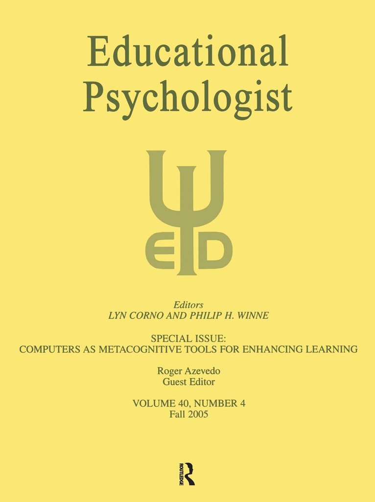 First published in 2005. This Volume 40, No 4 of Autumn 2005 of the Educational Psychologist. The articles appearing in this special issue of Educational Psychologist reflect a growing interest by researchers from various fields in examining the use of computers as metacognitive tools for enhancing learning. This topic has become increasingly important as computer-based learning environments become ubiquitous and students use them extensively both in and out of school to learn about conceptually rich domains.