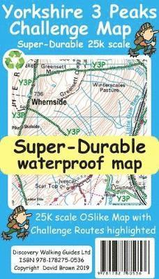 Yorkshire 3 Peaks Challenge Map at 25k scale with challenge routes highlighted. Waterproof, tearproof and recyclable.