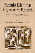 Particular themes examined are: the research dilemmas that occur from feminist perspectives in relation to researching private and personal social worlds; the position of the researcher as situated between public knowledge and private experience; and the dilemmas raised for researchers seeking to contribute to academic discourse while remaing close to their knowledge forms.