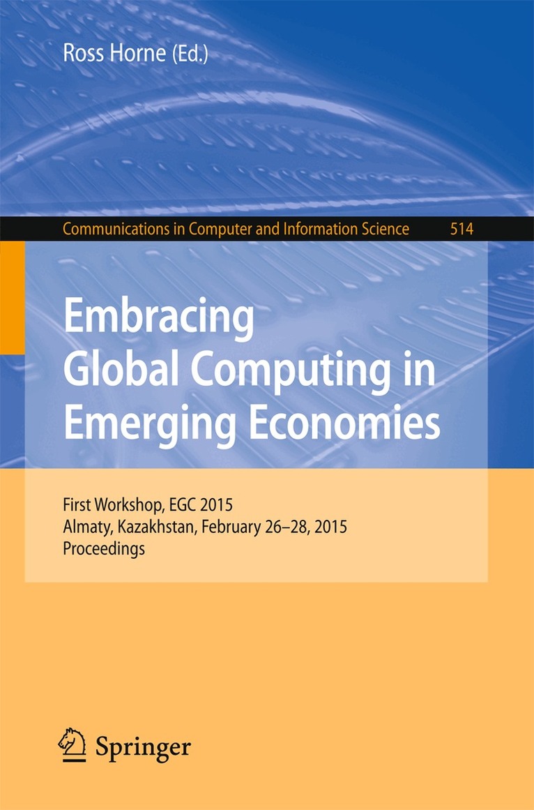 This book constitutes the refereed proceedings of the First Workshop on Embracing Global Computing in Emerging Economies, EGC 2015, held in Almaty, Kazakhstan, in February 2015.The 13 revised full papers presented were carefully reviewed and selected from 28 submissions. The papers focus on the topic in two ways: one part is directly relevant to the problems of delivering cloud services in an emerging economy such as Kazakhstan, the other part represents ICT innovation by scientists of the region.