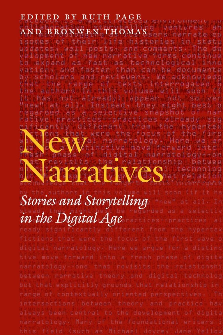 Just as the explosive growth of digital media has led to ever-expanding narrative possibilities and practices, so these new electronic modes of storytelling have, in their own turn, demanded a rapid and radical rethinking of narrative theory. This timely volume takes up the challenge, deeply and broadly considering the relationship between digital technology and narrative theory in the face of the changing landscape of computer-mediated communication. New Narratives reflects the diversity of its subject by bringing together some of the foremost practitioners and theorists of digital narratives. It extends the range of digital subgenres examined by narrative theorists to include forms that have become increasingly prominent, new examples of experimental hypertext, and contemporary video games. The collection also explicitly draws connections between the development of narrative theory, technological innovation, and the use of narratives in particular social and cultural contexts.Finally, New Narratives focuses on how the tools provided by new technologies may be harnessed to provide new ways of both producing and theorizing narrative. Truly interdisciplinary, the book offers broad coverage of contemporary narrative theory, including frameworks that draw from classical and postclassical narratology, linguistics, and media studies.