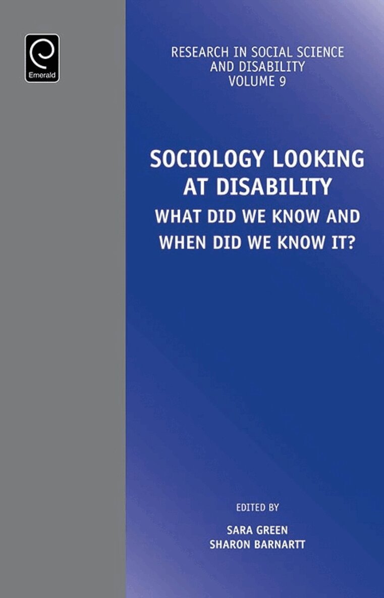 Current research in Sociology of Disability has a tendency to assume that very little written in this area until the last 20 years. However, this is not always the case. In part the lack of awareness of older writing occurs because of the ease of computerized searching for recent references or a sense that newer is better. It also reflects the assumption that Sociology as a field has ignored either disability as a social phenomenon or treated it solely as a medical phenomenon. While theorists and introductory textbooks have tended [and still tend] to ignore disability as a non-medical phenomenon and especially as a structured source of inequality, that does not mean that no attention was paid to disability in the earlier years. Rather, interest in disability from a sociological point of view exists as early as the late 1800s. The purpose of this volume is to explore that literature, with an eye towards encouraging current scholars not to ask “the same old” questions but to use the older writings as a basis for revolutionary as well as evolutionary thinking. What do the older writings tell us about what questions we should be asking, and what research we should be doing, today?