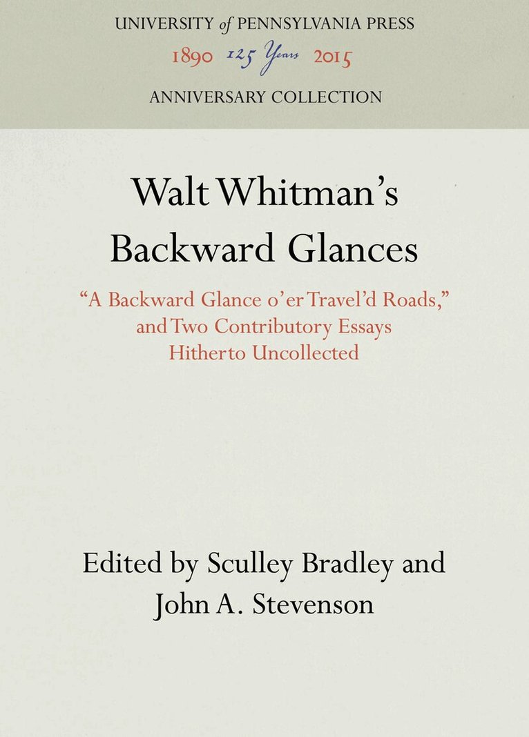"a Backward Glance O'er Travel'd Roads," and Two Contributory Essays Hitherto Uncollected