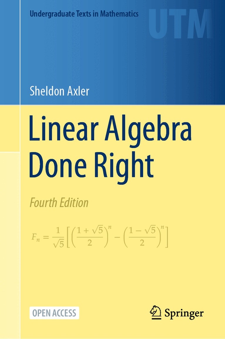 Now available in Open Access, this best-selling textbook for a second course in linear algebra is aimed at undergraduate math majors and graduate students. The text focuses on the central goal of linear algebra: understanding the structure of linear operators on finite-dimensional vector spaces.