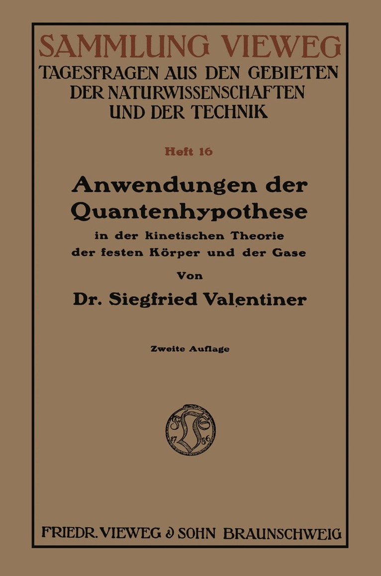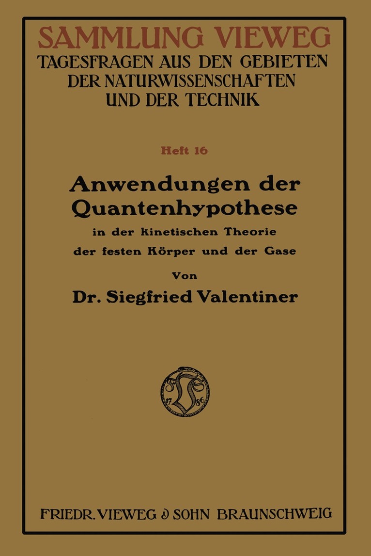 Anwendungen der Quantenhypothese in der kinetischen Theorie der festen Körper und der Gase in elementarer Darstellung