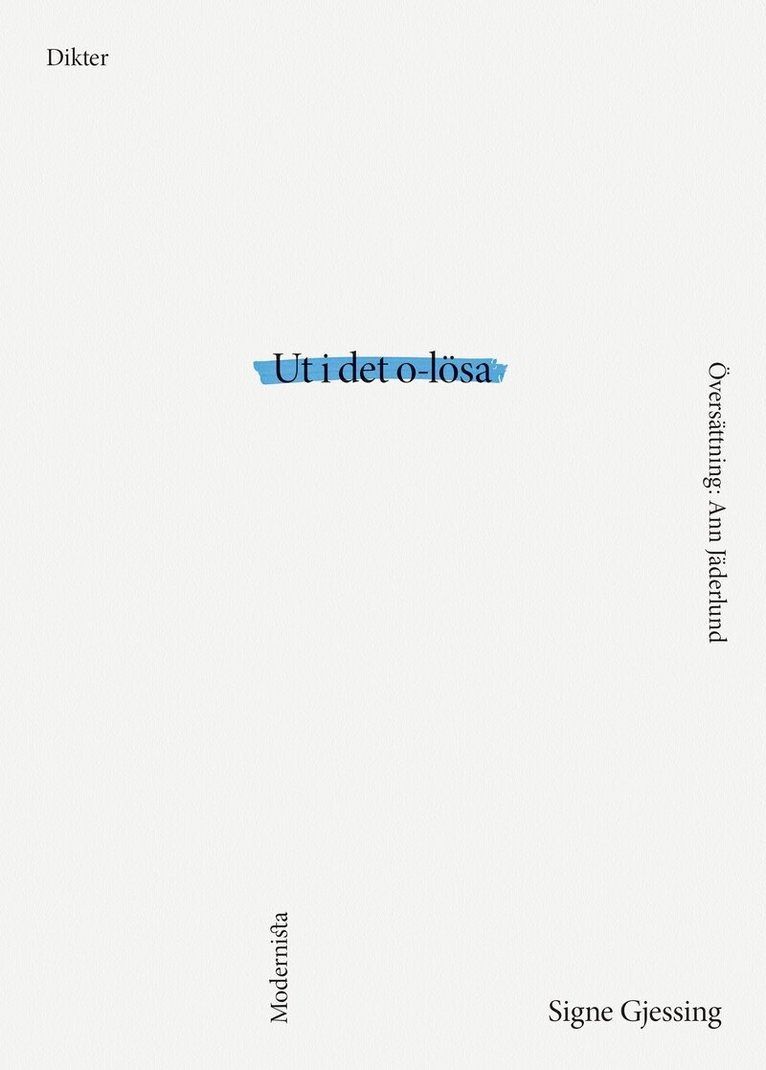 »Det var länge sedan jag läste något så säreget i samtidspoesin. I sina bästa stunder tvingar Signe Gjessings dikter fram en helt annan läsart, där man släppt meningsuttolkandets matris, för att bara följa med i den pulserande vågen. Det öppnar upp för en annan typ av tänkande, ett blint tänkande där blicken tycks ha slocknat, känseln domnat bort, och tillvaron upplevs genom halvvakans inre tunnlar. Samtidigt förblir språket märkligt klart och lysande. Och världen ligger för en sekund ny framför en.« | VIOLA BAO, SvD»Signe Gjessings Ut i det o-lösa försvarar poesins plats på alla platser. Den visar att det går att låta en ordkropp dra med sig allt i sin väg, det går att låta en sinnlighet spränga upp tillvaron. Kort sagt, den visar vad som händer när en poet tar bladet från munnen. [...] Ut i det o-lösa är en underbar, storartad debut.« | ELISABETH HJORTH, SYDSVENSKA DAGBLADET På några få år har Signe Gjessing rönt status som en av Danmarks viktigaste poeter. Jämförelser har gjorts med storheter som Nelly Sachs, Arthur Rimbaud och Inger Christensen. I debutboken Ut i det o-lösa utforskar Signe Gjessing villkoren för livet och varat med en kosmisk tematik och genom att följa diktens egen logik - en dikt som skapar sitt eget universum.Av ett så ovanligt slag är Gjessings debutbok att en av svensk poesis stora tolkar den: I svensk översättning av Ann Jäderlund.SIGNE GJESSING [f. 1992 i Vesthimmerland, Nordjylland] är en dansk poet. I snabb följd har hon gett ut två diktsamlingar: Ud i det u-løse [2014] och Blaffende rum nænnende alt [2015]. Debutboken belönades med Danmarks största debutantpris, Bodil og Jørgen Munch-Christensens Kulturlegat.»Poesi som söker sin värld och sitt uttryck. Poesi som inte spirar och som jag längtar efter att få se växa mot solen.« | EVELINA STENBECK, SKÅNSKA DAGBLADET, VÄLJER ÅRETS BÄSTA BÖCKER»Abstraktioner och avskalade bilder håller jämn hög nivå i ett rytmiskt böljande språk där Ann Jäderlunds tolkning till svenska är briljant. [...] Gjessing liksom poetiserar poesin, och jag är nästan fysiskt utmattad av eufori efter läsningen.« | PER ENGSTRÖM, SR, P1 KULTURNYTT»Hon skriver metaforer hopfogade med orimlighetens sytråd. Åtskilliga poeter har väl tidigare fängslats av Rimbaud, men Gjessing gör något helt nytt av sin fascination, och skriver därmed en poesi som ger läsaren helt nya insikter.« | BJÖRN KOHLSTRÖM, JÖNKÖPINGS-POSTEN»Gnistrande talangfull, stjärnfallande visionär poesi. Signe Gjessing är redan en stor diktare.« | LARS BUKDAHL, WEEKENDAVISEN»En bildrevolt, där ljuset flimrar, glittrar och glimmar över sidorna, och allting kan få kropp. Leksjukt och med oupphörlig förvandlingskraft företas de mest halsbrytande språkmanövrer.« | LARS SKINNEBACH, JYLLANDS-POSTEN