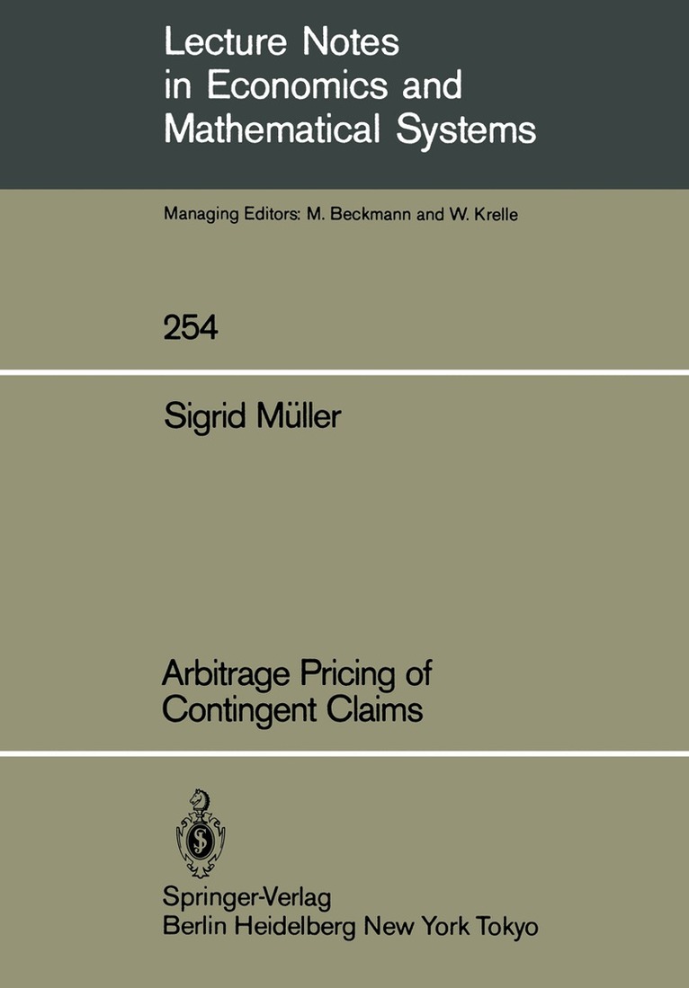 This book is intended as a contribution to the theory of contingent claim valuation based on arbitrage considerations. It is concerned with preference-free valuations of contingent claims (such as options written on a stock) in frictionless multiperiod securities markets that do not permit arbitrage profits. Besides the question of pricing it considers the possibility of hedging in securities markets. The research reported in this book was carried out at the Institut fUr Gesellschafts- und Wirtschaftswissenschaften, University of Bonn. While working in this field and preparing this monograph I received helpful comments and encouragement from many people, and I would like to thank all of them. Special thanks are due to Prof. Dr. Dieter Sonder- mann. He first stimulated my interest in the theory of contingent claim valuation and commented on my work at various stages. Furthermore, I would like to thank Profs. Martin Hellwig, Peter Schonfeld and Klaus SchUrger, all University of Bonn, for helpful comments on earlier ver- sions of this monograph.Parts of this monograph were presented at va- rious meetings including the European Meeting of the Econometric Socie- ty, Pisa 1983, the European Meeting of the Econometric Society, Madrid 1984, and the third Conference "Geld, Banken und Versicherungen", Karls- ruhe 1984. I greatly appreciate comments of Profs. Stephen Ross, Yale University, and Michael Brennan, UCLA. I take this opportunity to ex- press my indebtness to my colleague Dr. Shinichiro Nakamura for his con- stant encouragement during the laborious process of writing this mono- graph.